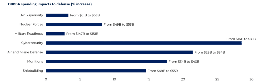 Geopolitical shifts, supply chain restructuring, new trade barriers, and competition for critical technologies are accelerating investment in national security and resilience – creating a theme we believe will drive performance across the defense stack.