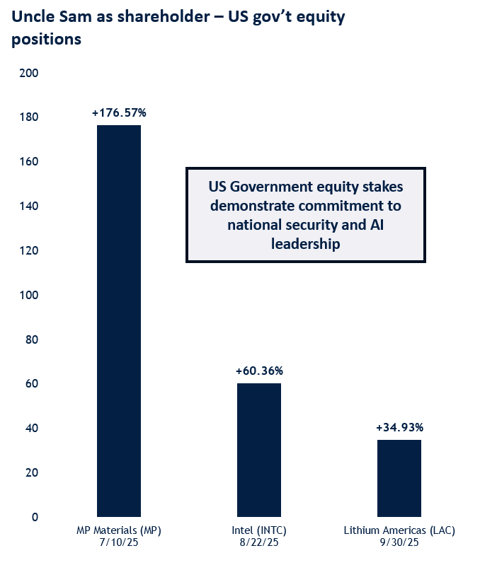 The US remains critically underdeveloped to provide for the growing power generation demands of the AI supercycle, as well as everyday consumption. We continue to see significant capital investment directed toward expanding generation capacity, including initiatives supported by the US government. We believe this theme offers considerable upside potential, and we are leveraging active managers to capture these opportunities.