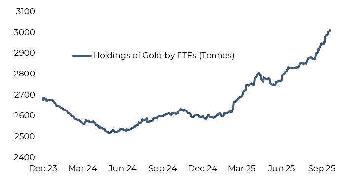 - Large U.S. fiscal deficits: Portfolios are increasingly turning to gold for protection