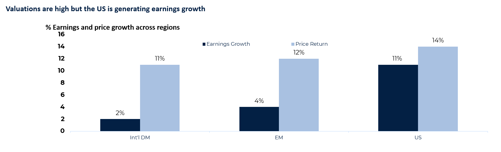 Valuations have reached the upper end of their historical range, but strong company fundamentals are supporting these prices.