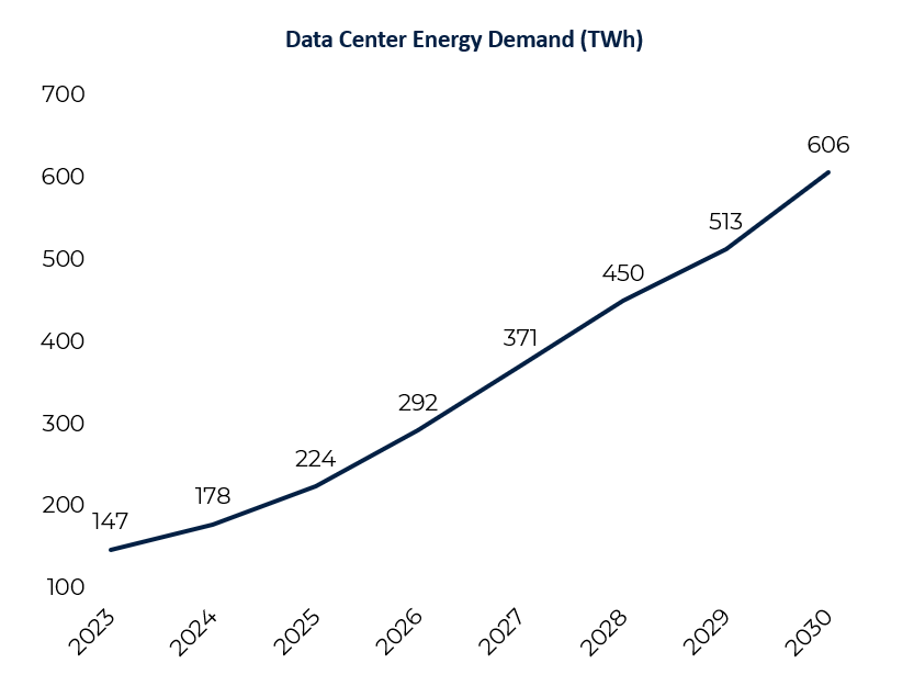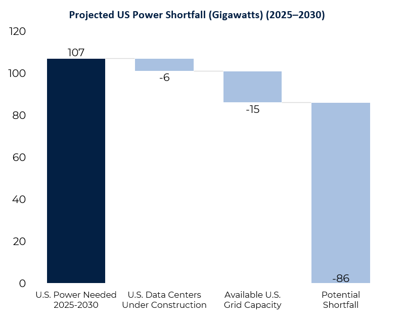 - Long the “Power Shortfall” using active – the US is structurally short power, and demand is increasing significantly